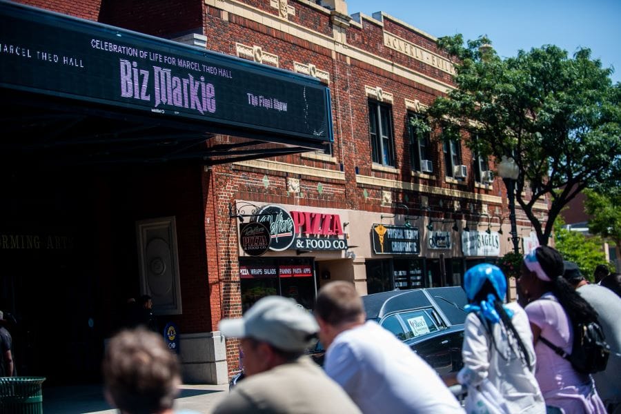 As though to raise spirits among the bereaved, a mural of Markie was prominently featured just beyond the theater lobby. It depicted the rapper seated in a bathroom “Pickin Boogers,” an image that adorns the “Biz’s Baddest Beats” compilation.