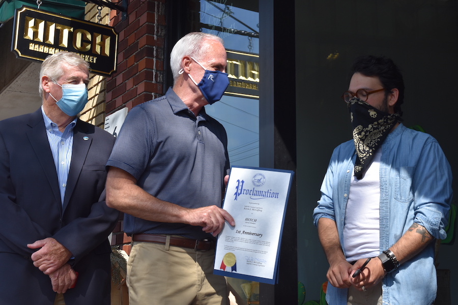 Suffolk County legislator Kevin McCaffrey awarded the small business with a proclamation for its one year in service.