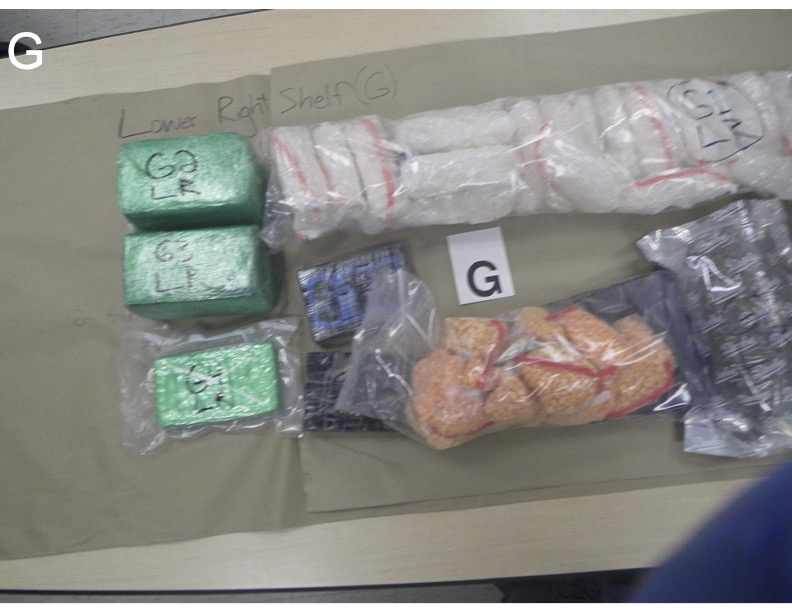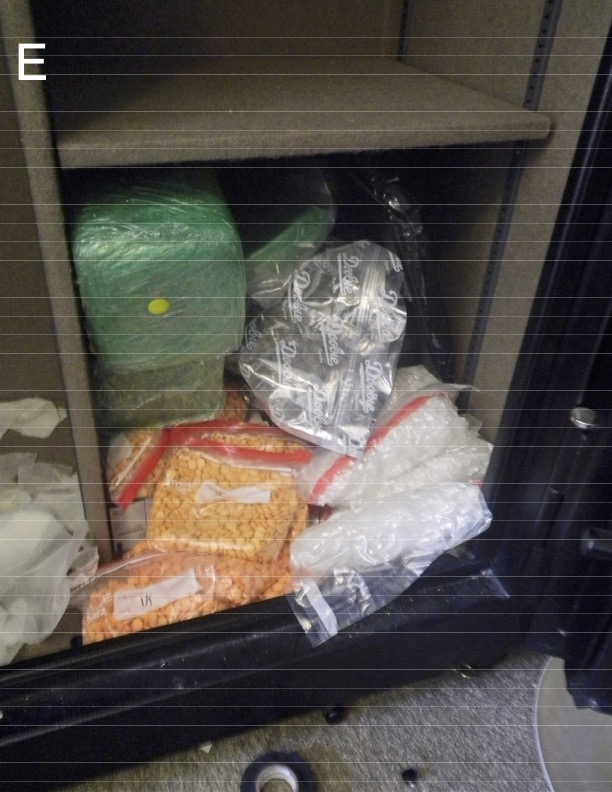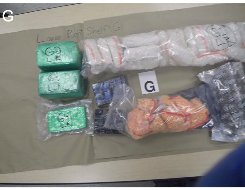 Fourteen kilograms of cocaine, several thousand ecstasy and MDMA pills, and a 12-gauge shotgun.