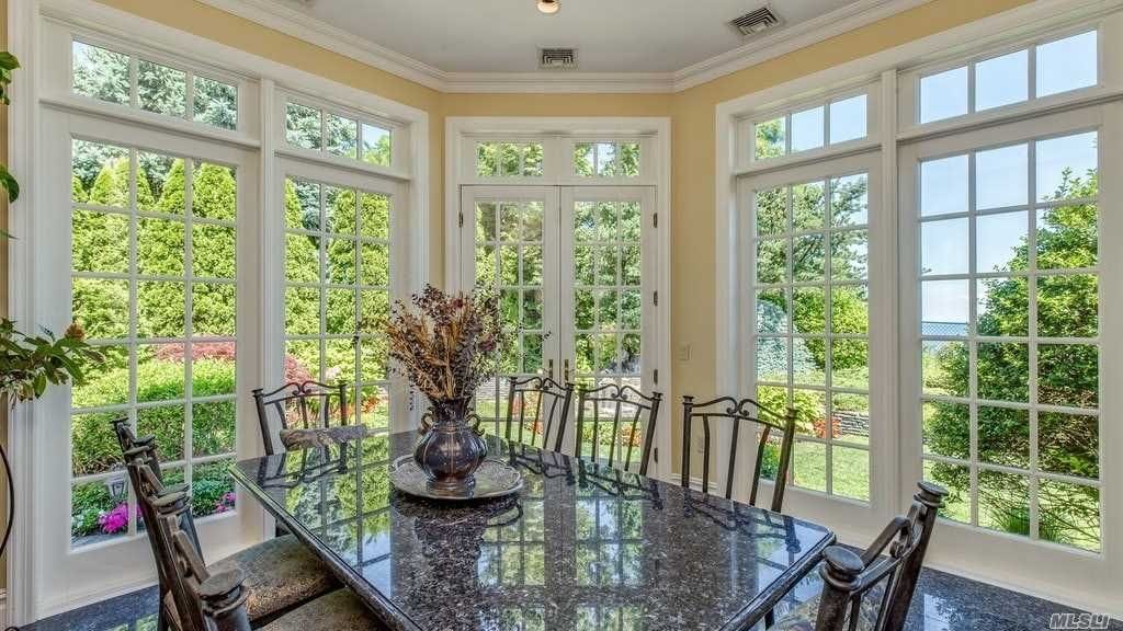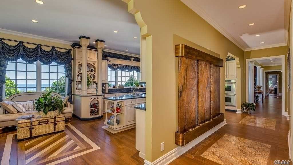 The 10,000-square feet Belle Terre home overlooks the Long Island Sound, offering a panoramic water views from near anywhere in the house.