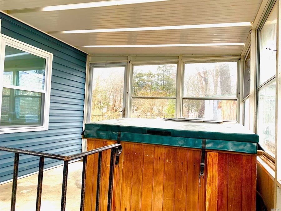 In addition, the home’s added bonus is its sunroom with a hot tub.