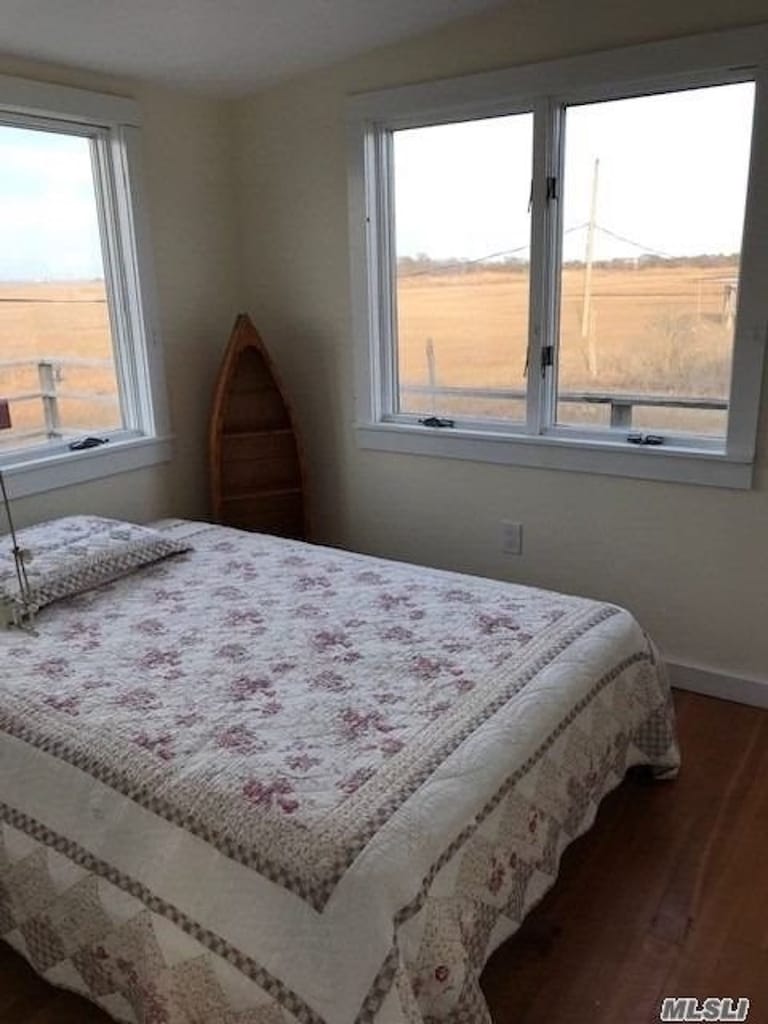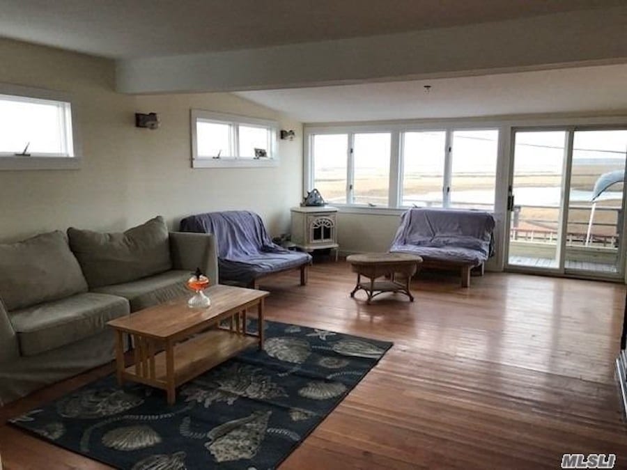 This three-bedroom, one bathroom house is run completely by solar panels. It also offers plenty of views of the Great South Bay with its many windows and wrap-around deck.