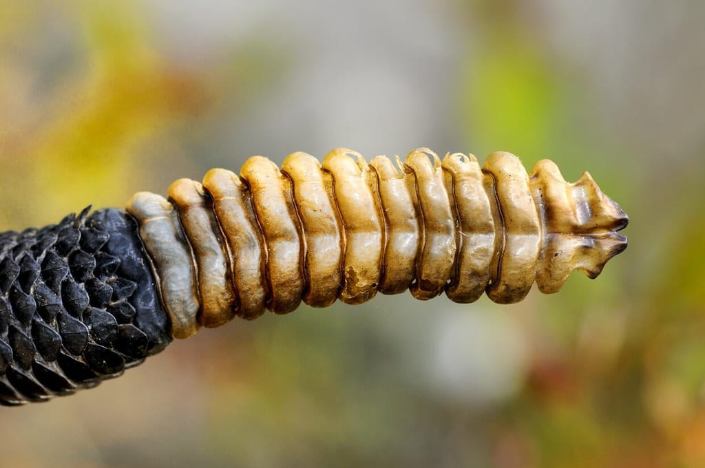 Its tail ends in a stack of hollow keratin segments that clatter together when shaken, producing the dry buzz that once sent shivers through Long Island hikers and bikers.