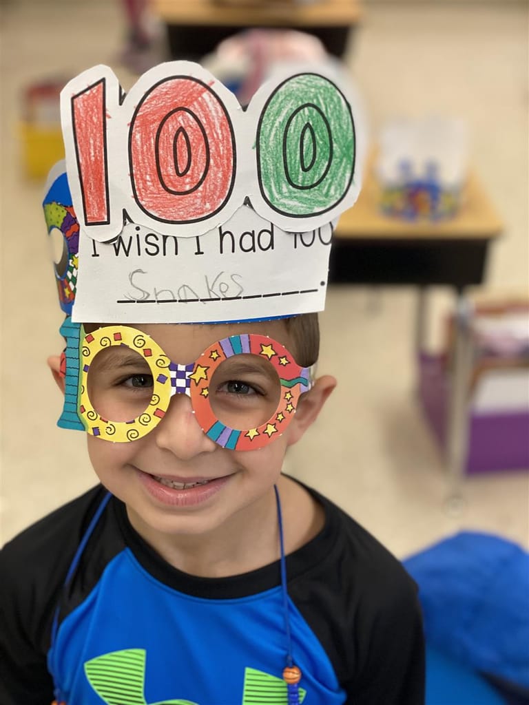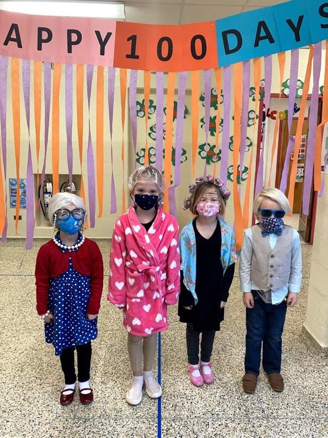 Students — and some teachers — marked the milestone in a variety of imaginative ways. Many dressed as centenarians, while others created zany hats or used 100 Lego pieces to build unique structures.