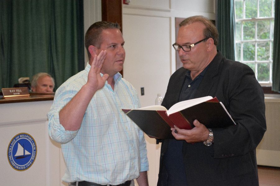 Two Bellport Village trustees were thanked for their service and bid farewell and two others took their oaths of office Monday night at the Bellport Community Center.