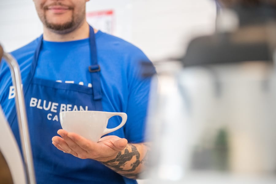 When walking into the building, the first half of the space is the Blue Bean Café and Matcha Tea in Heaven, which serves house-made coffee and other drinks.