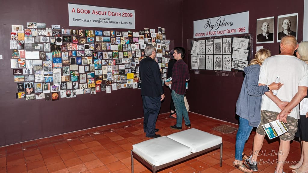 In 2009, artist Matthew Rose wanted to pay homage to Johnson by creating a new book about death. Rose asked for 500 postcards from each artist surrounding the theme of death. 487 artists participated and the show was a hit.