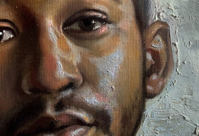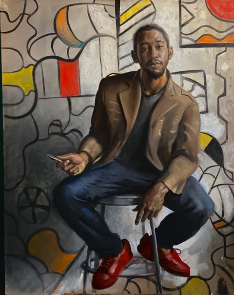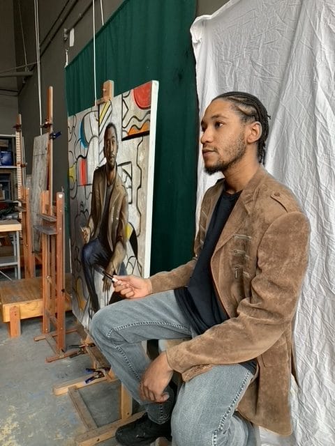 “One day, I asked Joshua if I could paint his portrait, and to paint him in front of his own abstract work. Joshua was thrilled with the idea.”