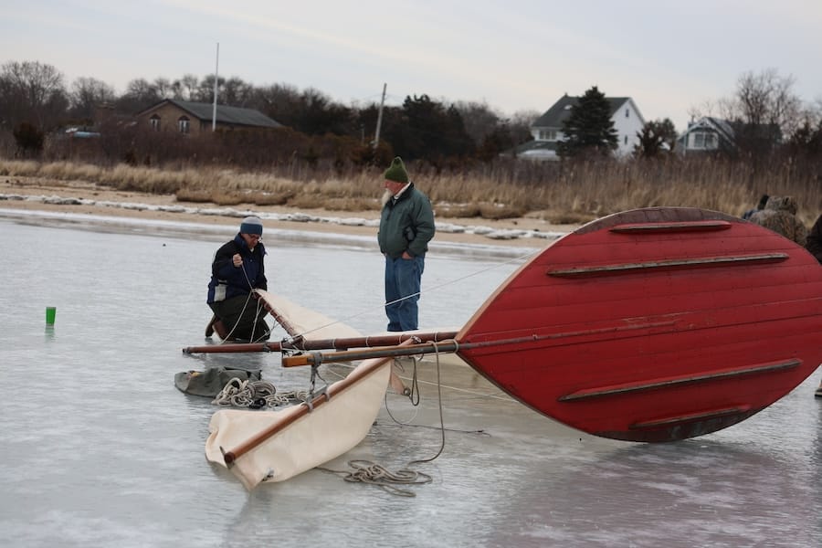 “Today [Saturday] is the first day of ice in about eight years,” said club member David Farrell of East Patchogue, who started sailing scooters in 1965.