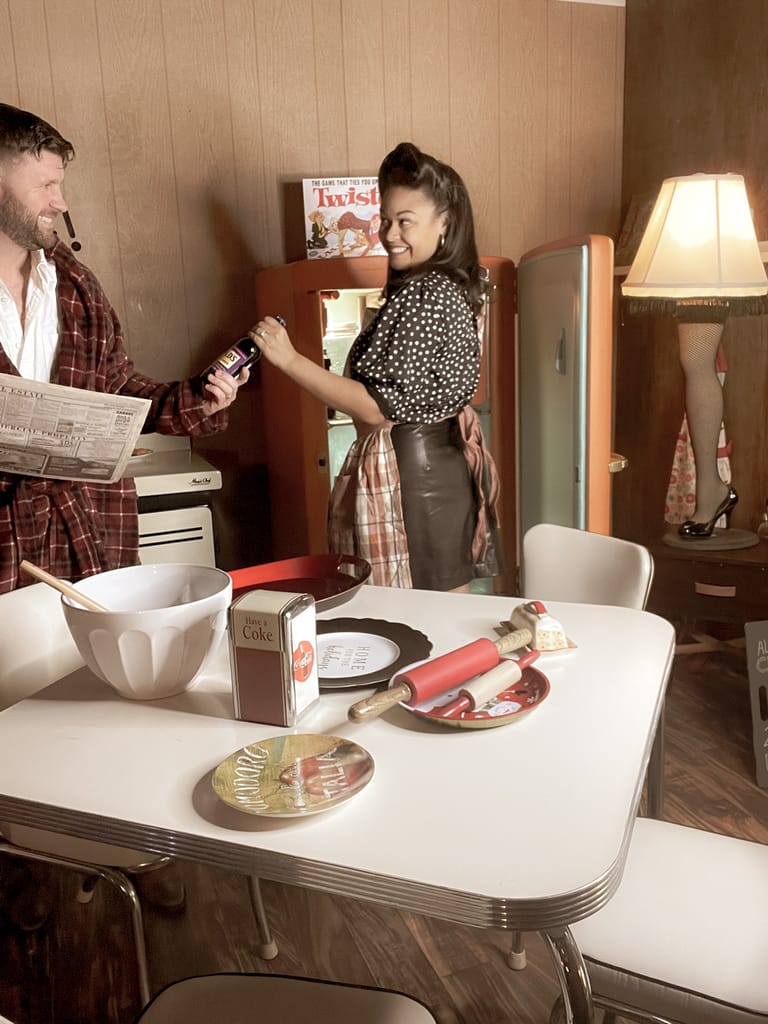 All the props, such as those for the 1940s-style “A Christmas Story” kitchen, were handpicked by Rivera and Ovejas. Most of the items there are vintage finds — repurposed by Rivera himself.
