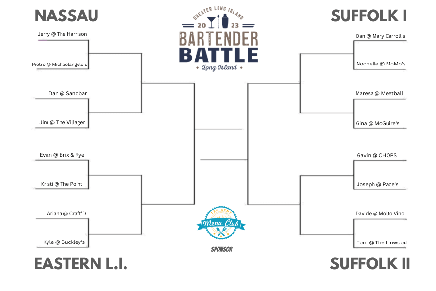 Congratulations to these bartenders who will be competing in Greater Long Island’s first-ever Bartender Battle Long Island. Below is the 16-bartender bracket, broken up by geography. The head-to-head voting will start in February on greaterlongisland.com.