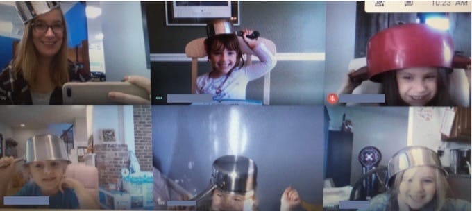 Danes led her remote class in an online celebration of Johnny Appleseed Day, encouraging her students to dress like him with pots on their head, and performing activities relating to apples, including reading and making an apple volcano with baking soda and vinegar.