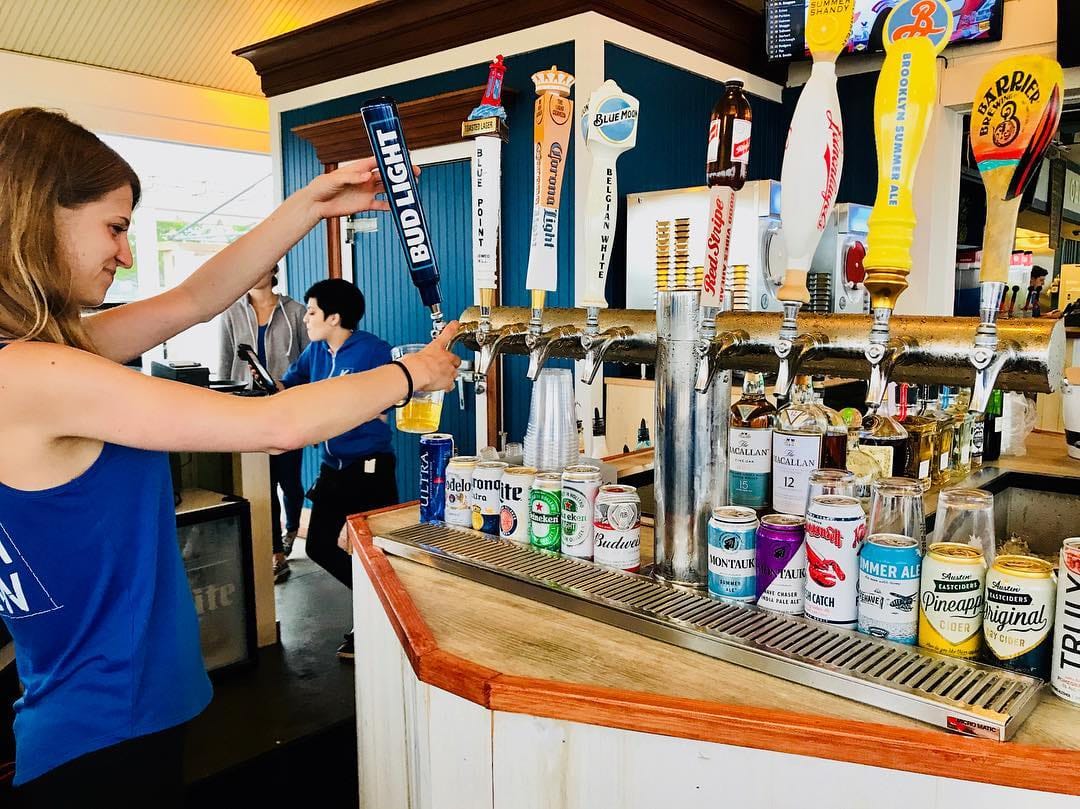 Top: Bartender pouring a beer at Katch Venetian Shores in Lindenhurst. (Credit: Facebook)