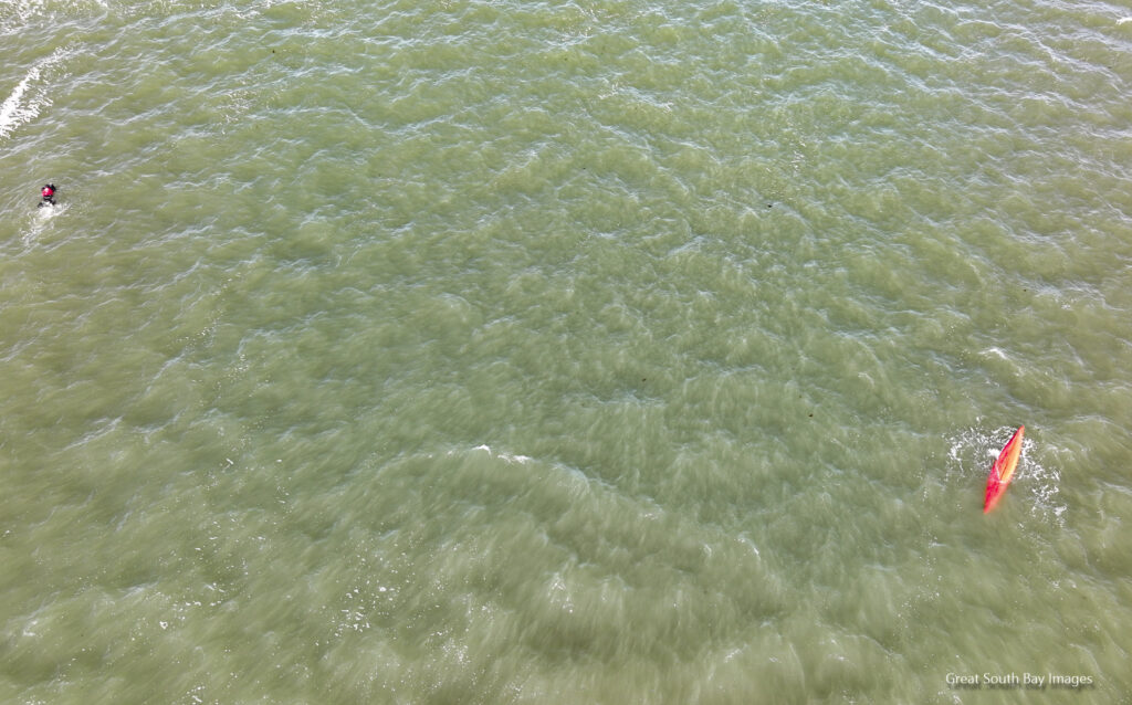 As the SCPD and local fire departments were en route, Busch sent up his drone and located the man floating in the frigid Atlantic Ocean, separated from his kayak but holding onto some sort of floatation device nearly 3/4’s of a mile out to sea. “He was passed the breakers,” Busch said.