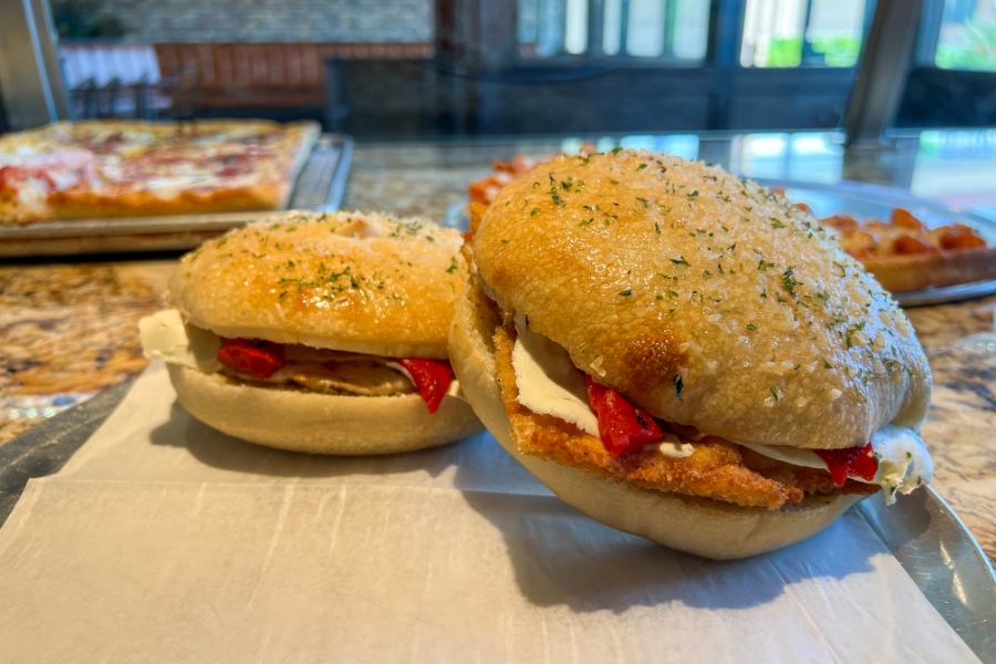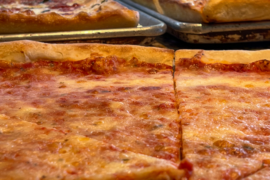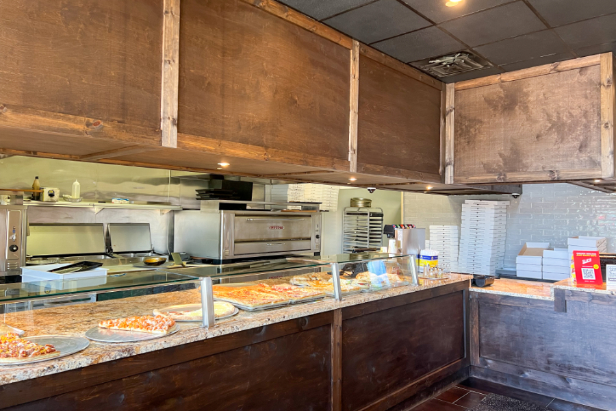 At the counter, customers can order a variety of slices. There’s also paninis, wraps and garlic and cheese pepperoni rolls.