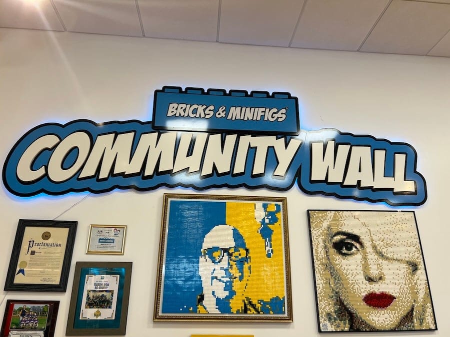 The new space features cozy building nooks, dedicated party rooms, sorting stations, and rows of rare minifigs for collectors. A large “community wall” inside pays tribute to Larry and his dream — including a portrait of him made entirely from LEGO bricks hanging above a couch.