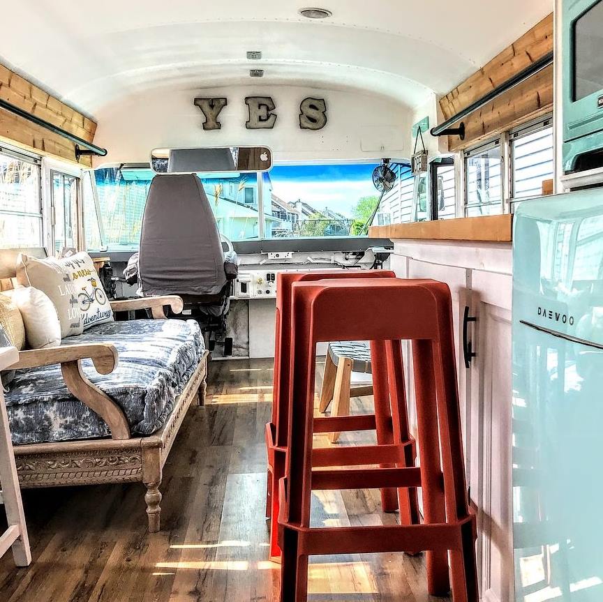 According to the two, it took around six months to complete the transformation from a school bus to a 225-square-foot tiny home.