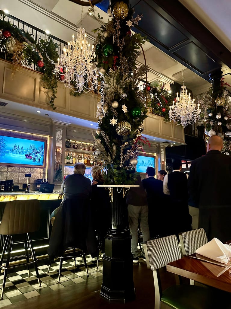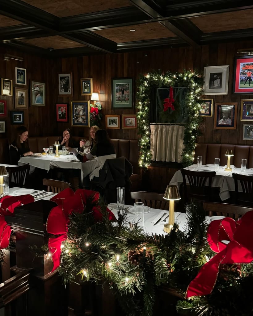 Let’s start with the location. Vincent’s Clam Bar is directly across from Roosevelt Field, so, yeah, that’s convenient. This Italian staple has a cozy feel, with classically lit garland draped throughout. You can also watch and hear vintage Christmas performances on big screens. My personal favorite is the Andy Williams Variety Show. And the Christmas cocktails are always perfect for your IG feed.