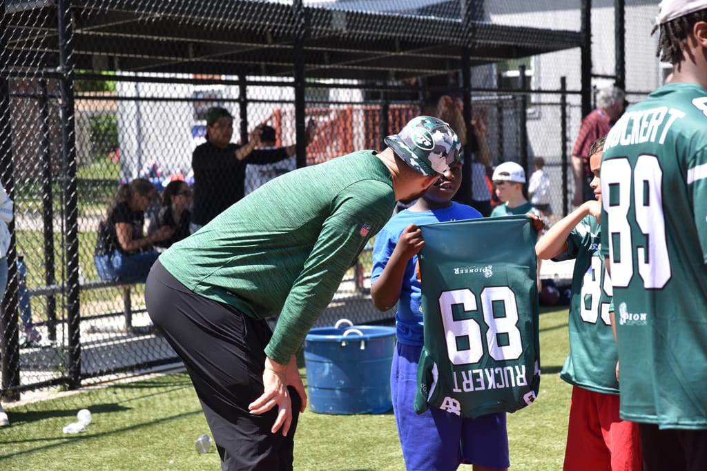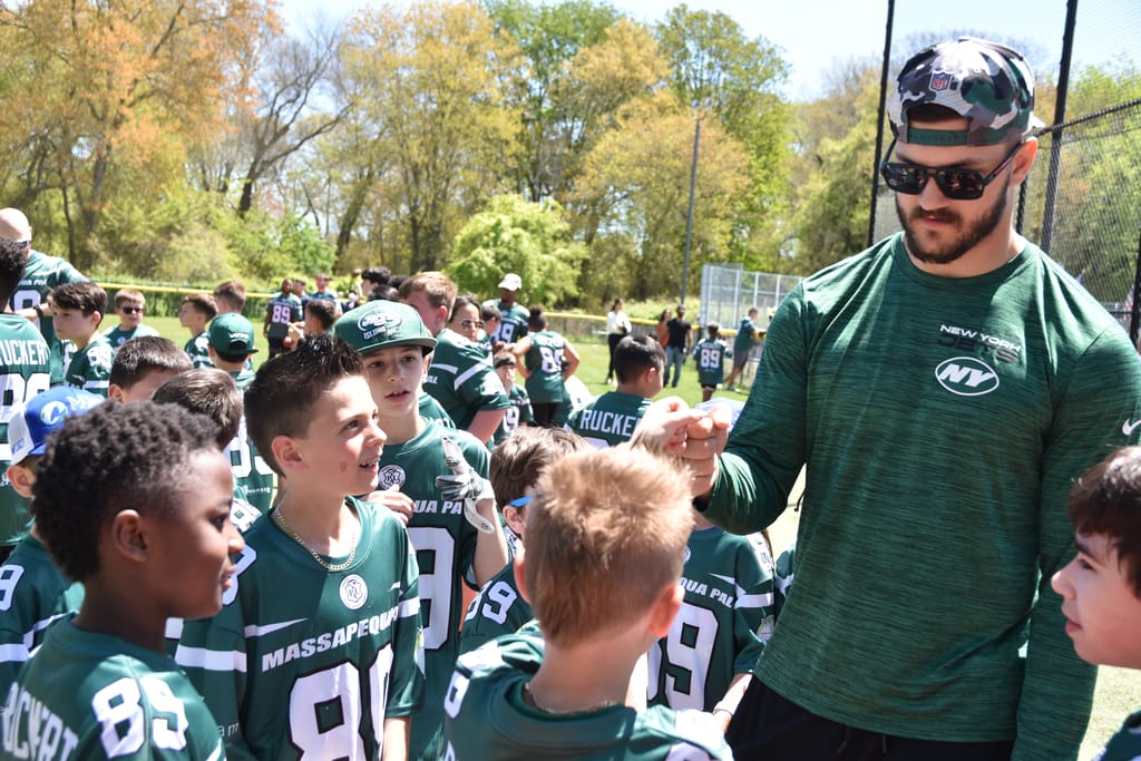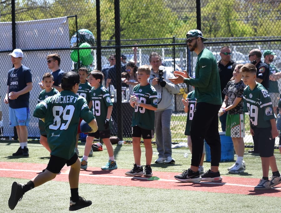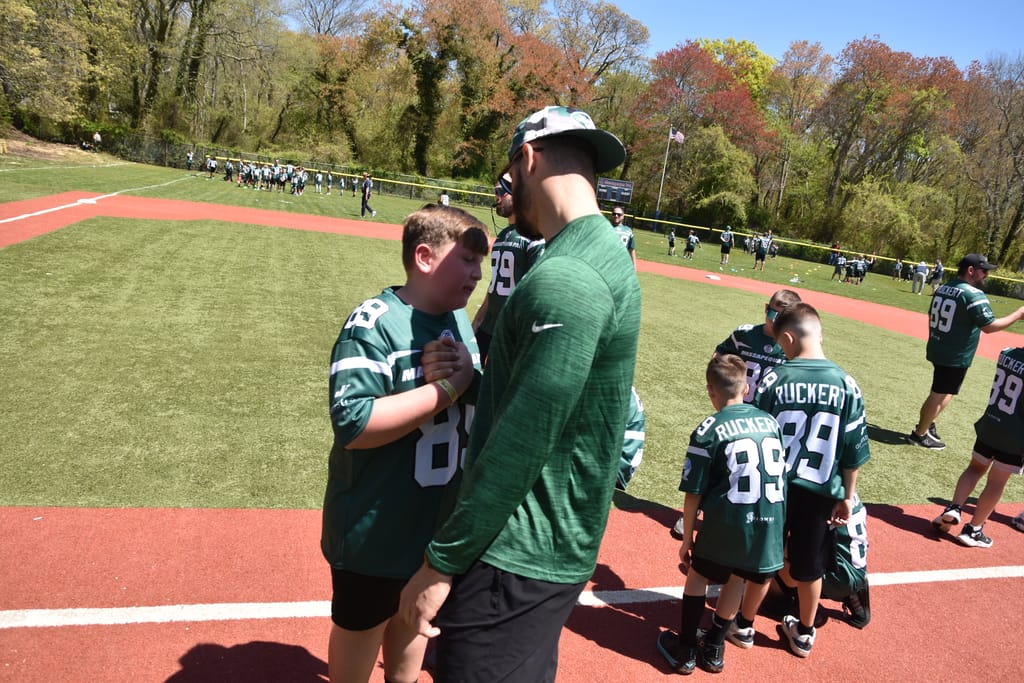 And so were the many children who were at Jeremy Ruckert’s camp on Sunday. There was a sea of green “RUCKERT 89” jerseys in Massapequa learning the game of football from a local hero from Long Island.
