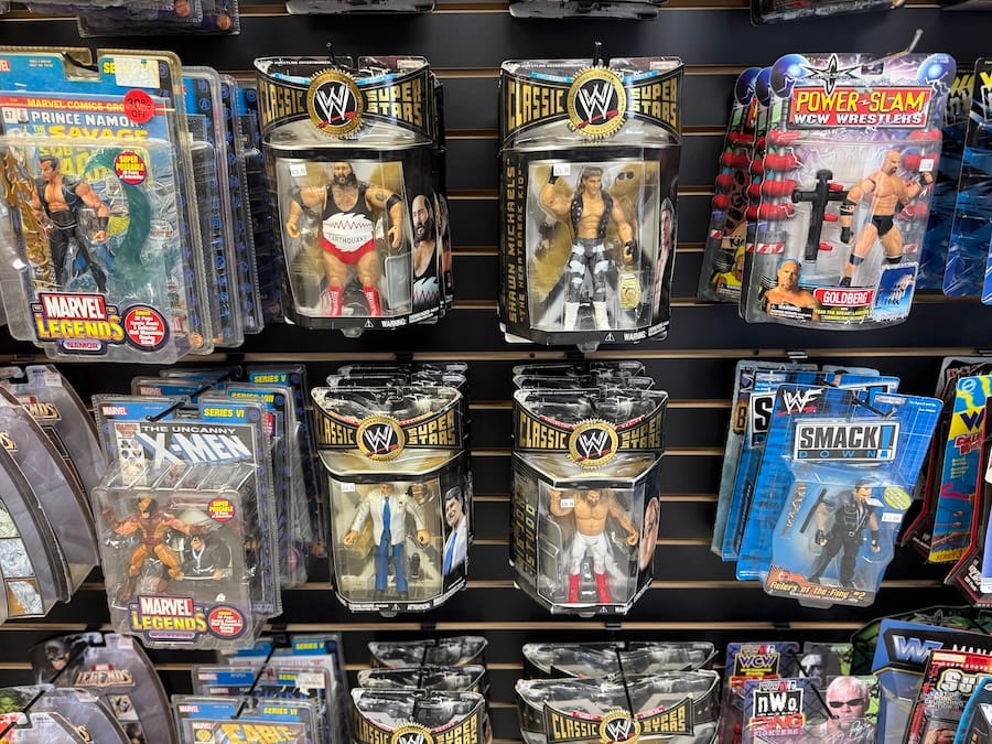 Collectors can find everything from Spider-Man comics dating back to the 1960s to vintage X-Men, Batman, Marvel, and DC collectibles, along with baseball cards and other memorabilia.