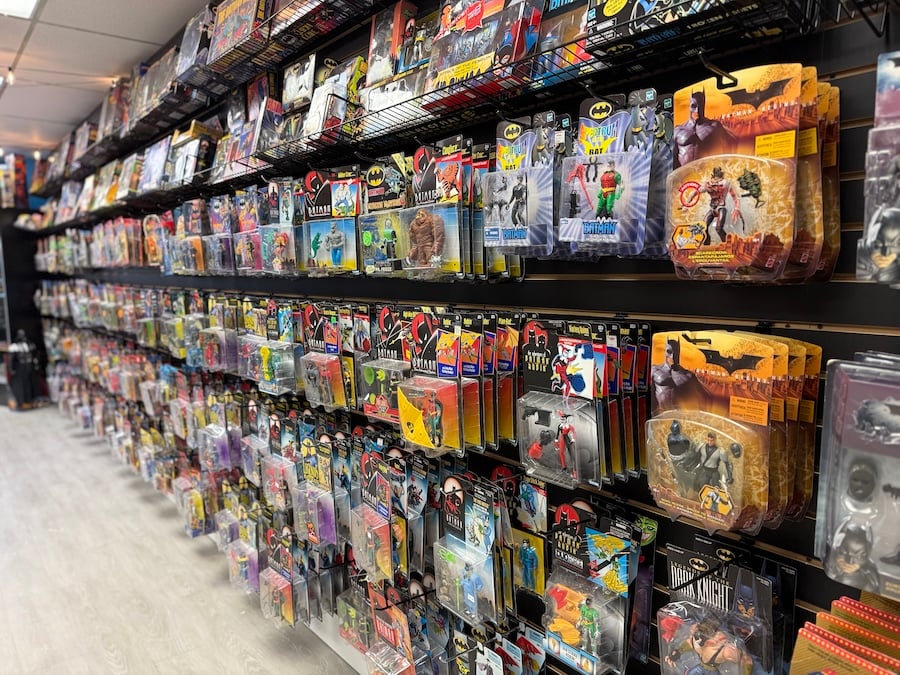 The shop, now located at 69 North Ocean Ave., sits directly across the street from where Batter Box once operated — the toy store Maurus frequented as a kid. Riding his bike there week after week, he developed a love for comics, baseball cards, and collectible toys, a passion that eventually led him to open Lost Toys and Comics in Miller Place in 2024.