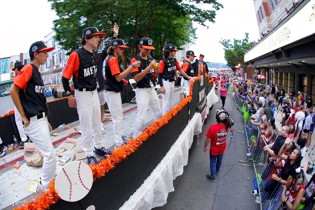 Top photo: Metro Region Champion Little League team from Massapequa, N.Y. participates in the opening ceremony of the 2022 Little League World Series baseball tournament in South Williamsport, Pa., Wednesday, Aug 17, 2022. (AP Photo/Gene J. Puskar)