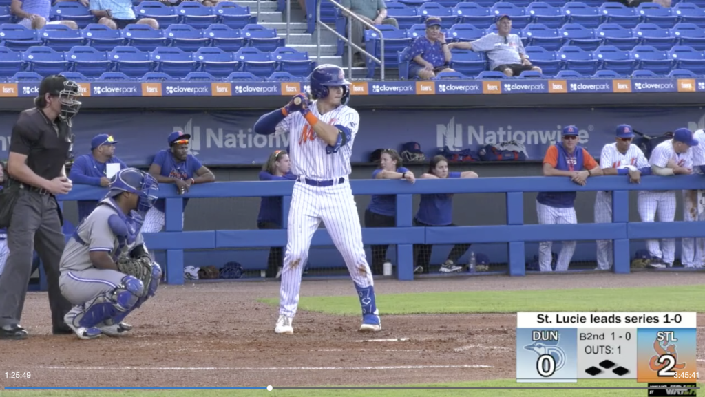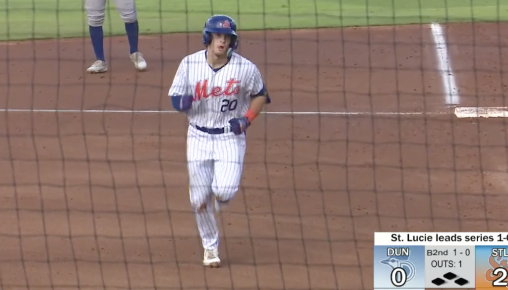 On Sunday, he smacked a triple and scored a run during the Mets’ 6-5 win over Dunedin in Game 1 of the championship series. Last Thursday in the first round of the playoffs, he drew a sixth-inning walk that started a three-run rally and led to a series-clinching 3-2 win over Palm Beach.