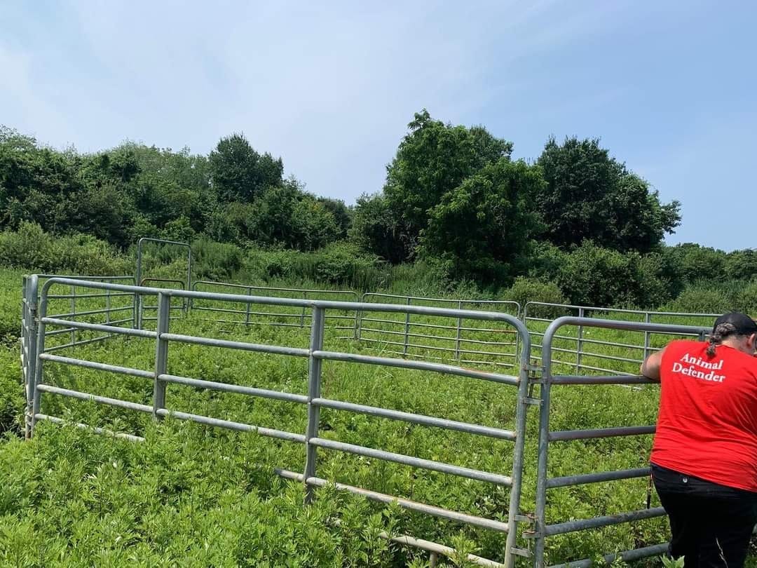 Using livestock panels, rescue groups erected the pen Thursday. The new effort comes after an unsuccessful attempt of employing a menstruating cow named Norma Jean to entice the bull from its hiding place in a wooded area near the farm he escaped slaughter from on Tuesday.