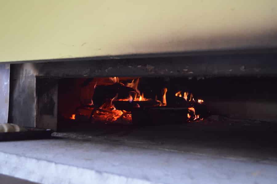 Molto Pizza’s oven has a mix of wood and coal: the wood adds a bit of flavor and the coal gives it the heat.