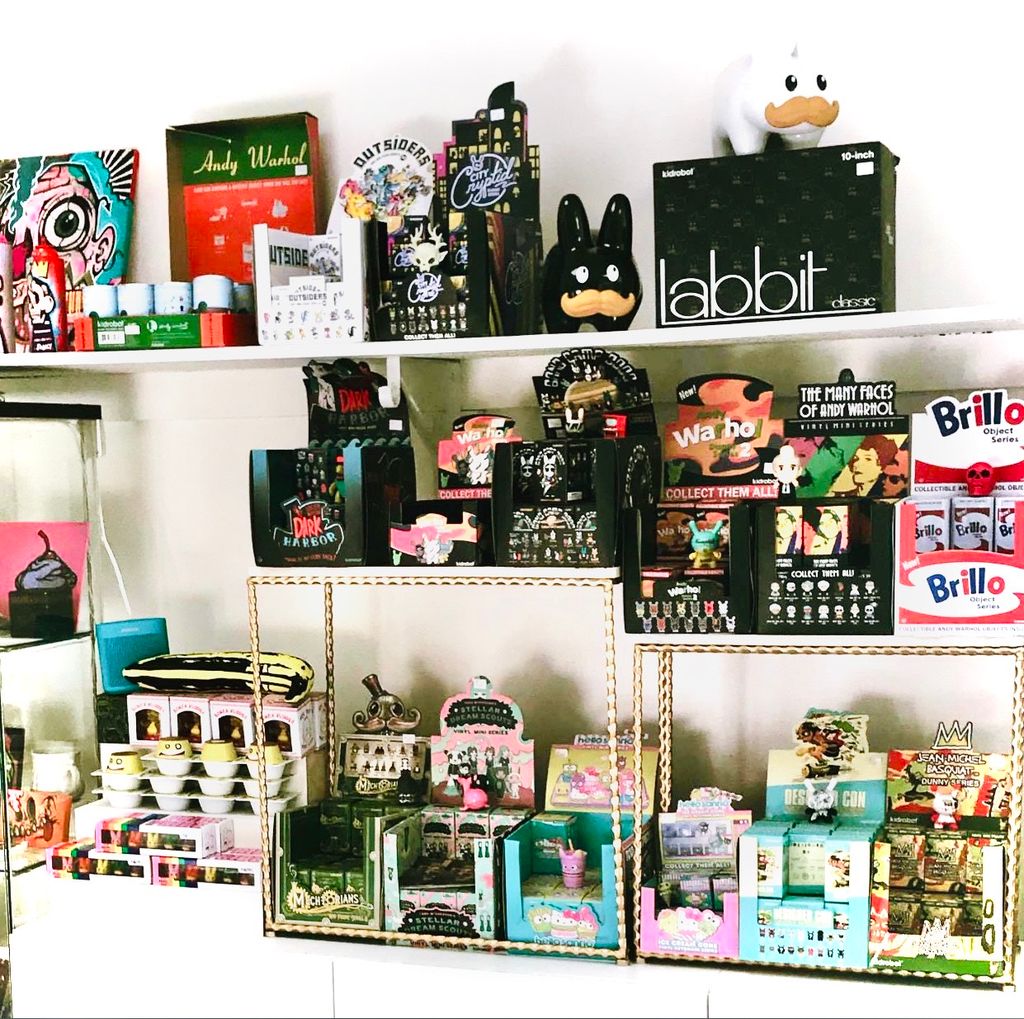 The “museum gift shop” sells artist merchandise, kidrobot vinyl art toys, prints, postcards, jewelry, pottery and pins.