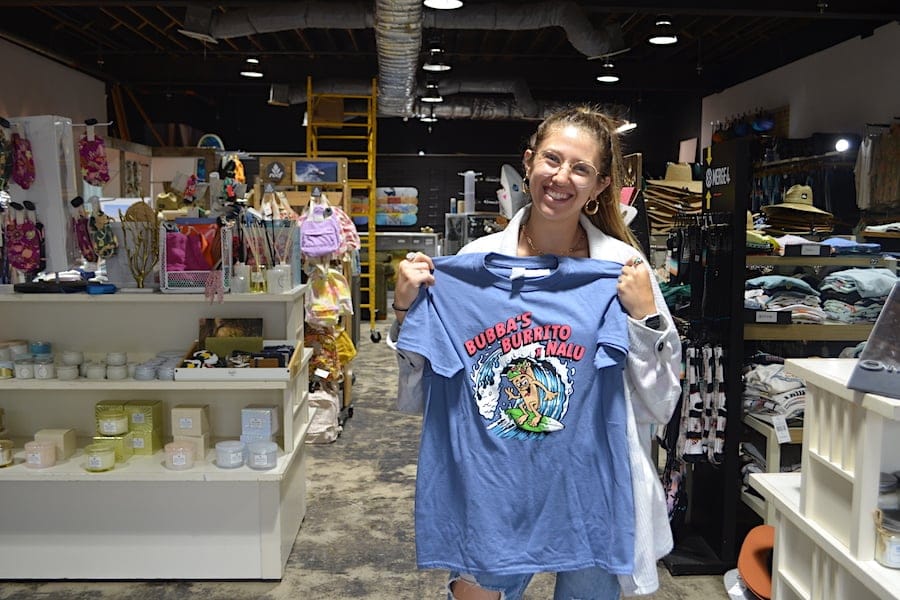 For example, Nalu Dry Goods recently created a shirt with Bubba’s Burrito Bar in Islip that features a surfing burrito.