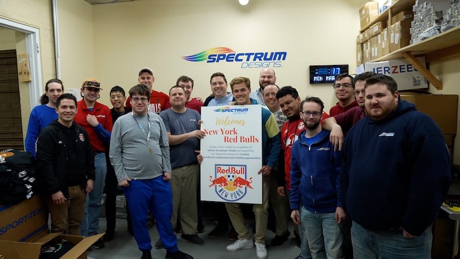 Port Washington’s Spectrum Designs welcomed New York Red Bulls players on Monday, as part of the organization’s Autism Acceptance initiatives leading up to Autism Awareness Month in April.