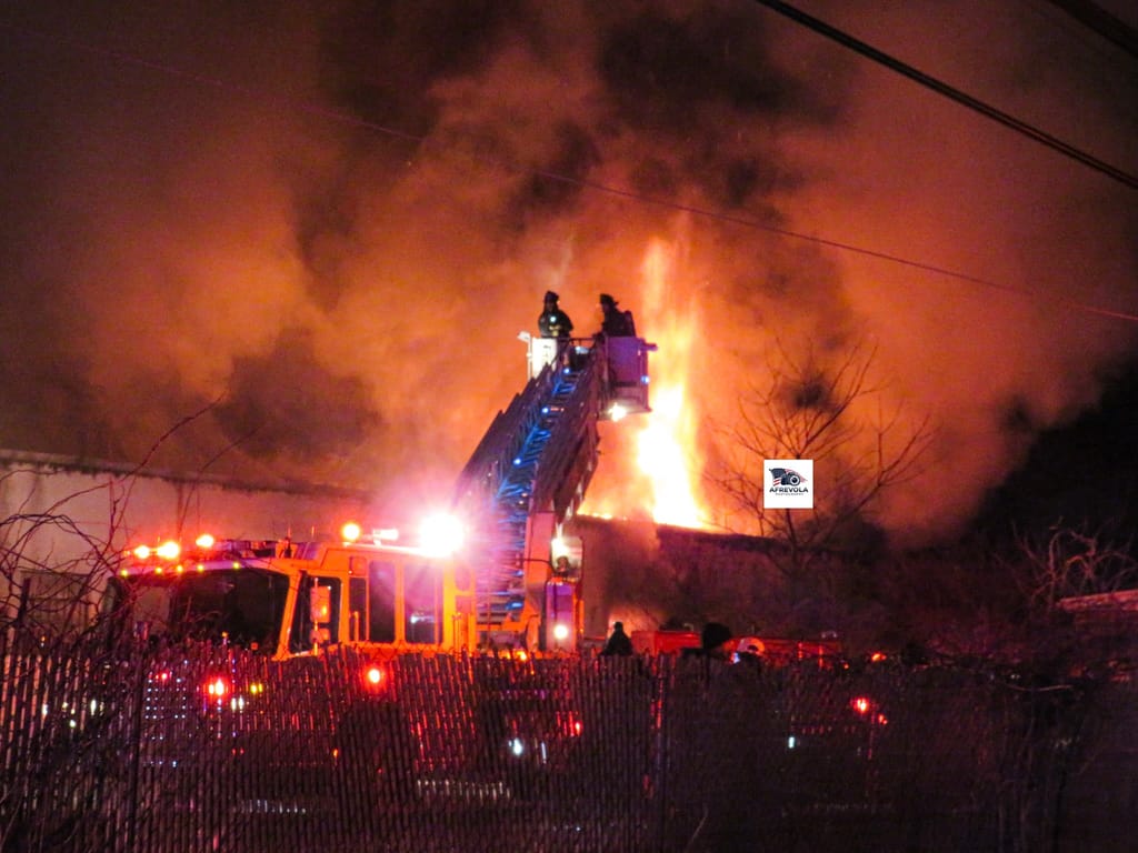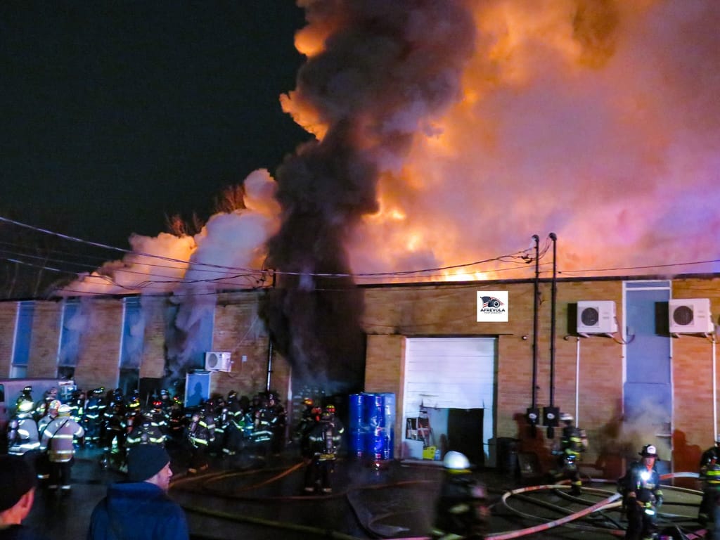 The fire broke out abound 10:30 p.m. Thursday at a commercial property located at 690 Albany Ave. Firefighters remained on scene for several hours as flames and heavy smoke poured from the building.
