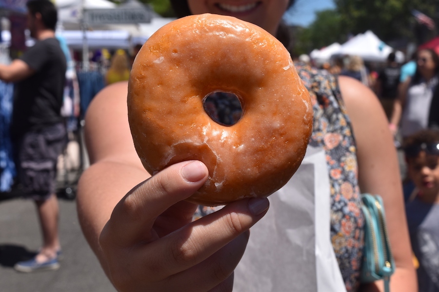 Top: North Fork Doughnut Company owners Jimmy Lyons, Kelly Briguccia, with their daughter, Teigen, at the Arts by the Bay festival in Bay Shore. (Credit: Nicholas Esposito)
