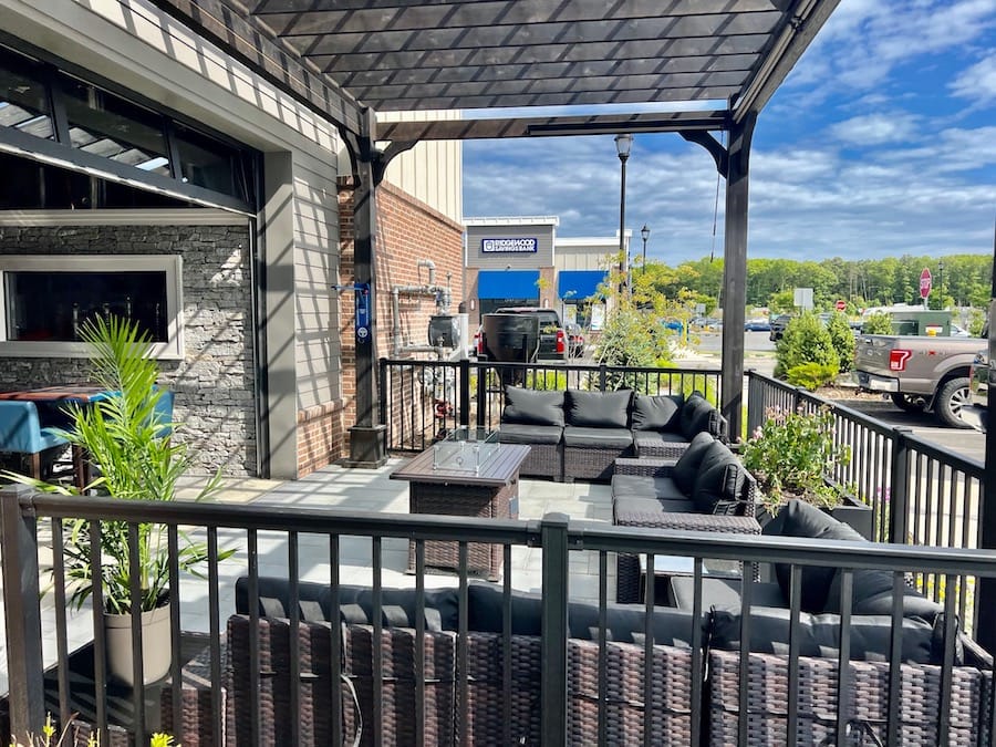 The interior of Southpaw Brewing Co., designed by Southpaw Construction Company, features a 22-foot U-shaped bar, sit-down service area spanning approximately 3,000 square feet, with an outdoor patio nestled under two pergolas. There’s also TVs throughout the space to watch sports and other live events.