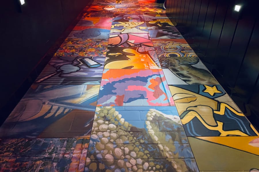Artwork carved into the wall at the back of the restaurant is perfect for a photo op.
