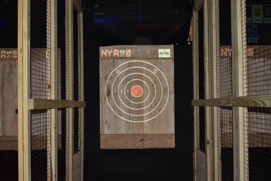 While there are other ax-throwing establishments on the island, NY Axe Throwing differs by offering digital games that project onto its targets. There’s tic tac toe, Connect Four, and a zombie hunting game.