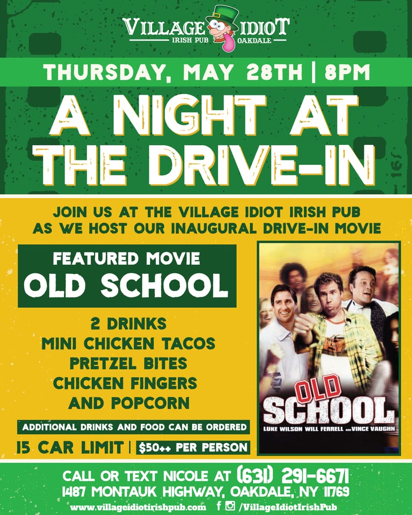 On May 28 at 8 p.m., the bar and eatery turns nostalgic and will host its inaugural drive-in movie night, showing the insanely popular 2000’s decade movie “Old School” on a giant movie screen in the parking lot.
