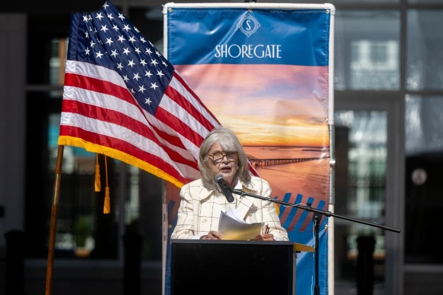 There wasn’t a “Mission Accomplished” banner hung outside the Shoregate apartment complex at Tuesday’s ribbon cutting ceremony, marking the completion of the massive and transformative downtown project.