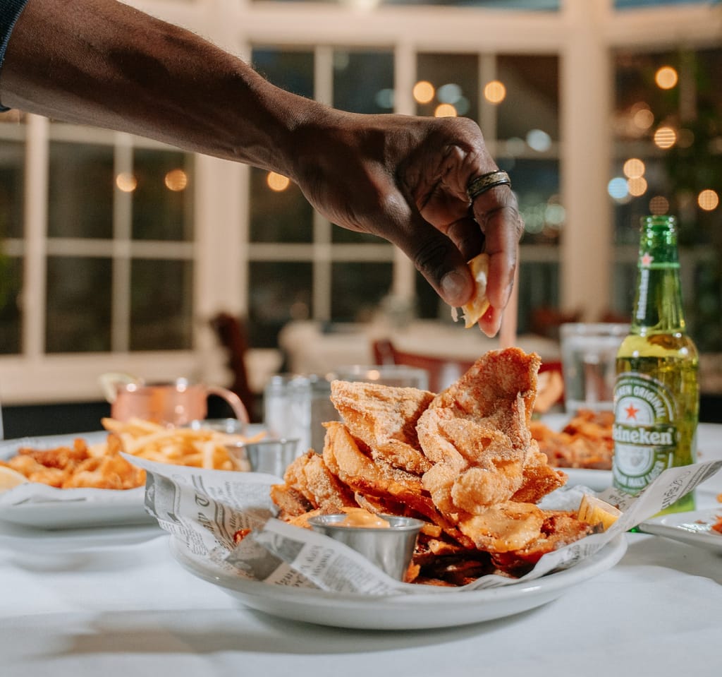 Year-round dining on Patchogue River. We recommend the greenhouse room in winter.