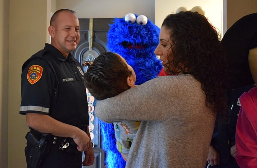 Starting at 11:30 a.m. on Thursday, volunteers came by to visit Tyler and make his Halloween a little less gloomy. Police officers from the 6th Precinct brought treats and the local kids stopped by in their costumes to share their candy. The visits lasted all day long.