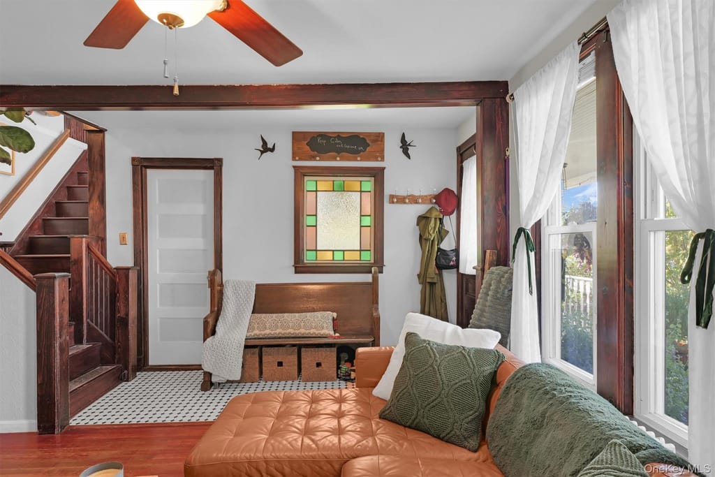 The 1,428-square-foot home at 67 Jayne Ave. features three bedrooms, two baths and the kind of charm and craftsmanship you hardly see these day: a wraparound front porch, stained glass windows in the entryway and on the front door, original hardwood floors, intricate woodwork — and a turret.