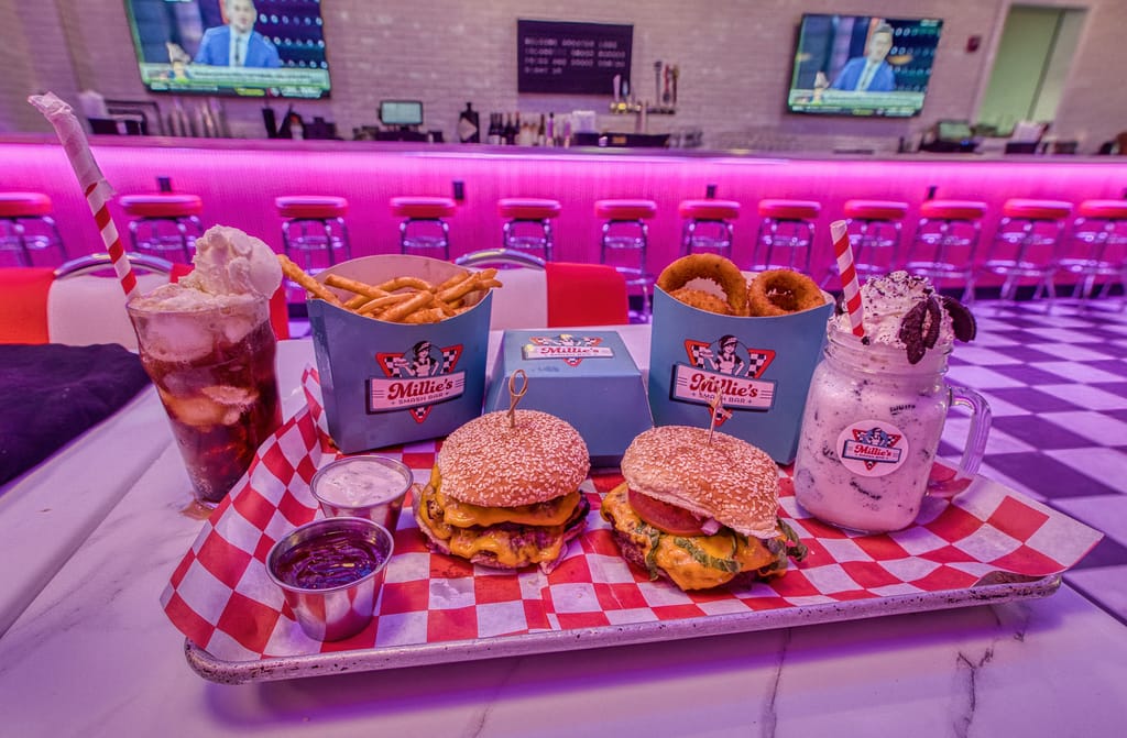Except now, you can mix in a burger from Millie’s Smash Bar, which occupies the back.