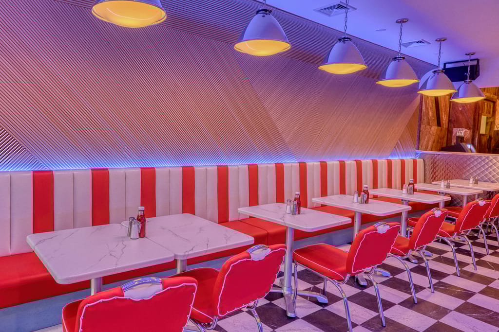 The old back room at That Meetball Place has been completely transformed into what looks like a 1960s-era Main Street luncheonette.