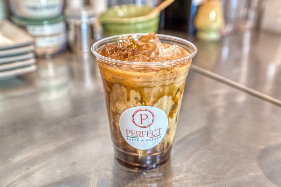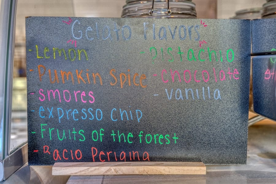 The menu features rotating gelato flavors, affogatos, cake lattes topped with actual slices of cake, homemade tiramisu and rainbow cookie cake, cannolis, olive oil cake and even house-made puppy gelato.