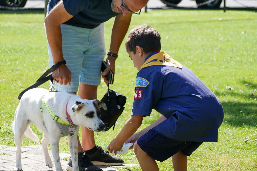 After the parade concluded, Cub Scout Pack 363 from Sayville assisted in offering all thirsty pets a bowl of water. Among the thirsty pets were a few parakeets and a guinea pig. The pets were reviewed by judges from the Rotary Club, and awards were given to the best large and small dog.