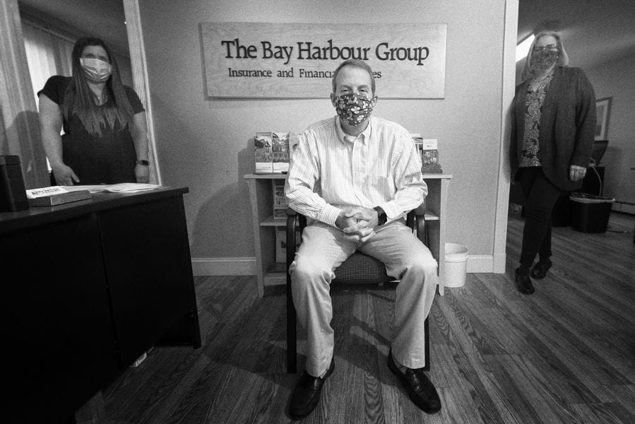 Top: A self portrait of a masked Benny Migliorino.
