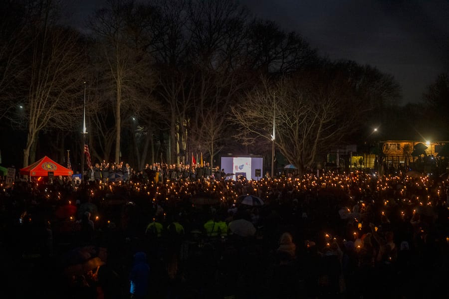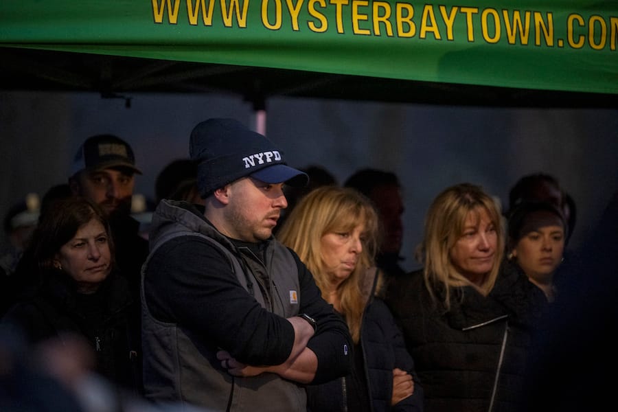 Hundreds filled Brady Park in Massapequa Park Wednesday night to honor the life of fallen NYPD officer Jonathan Diller with a candlelight vigil hosted by the Town of Oyster Bay.