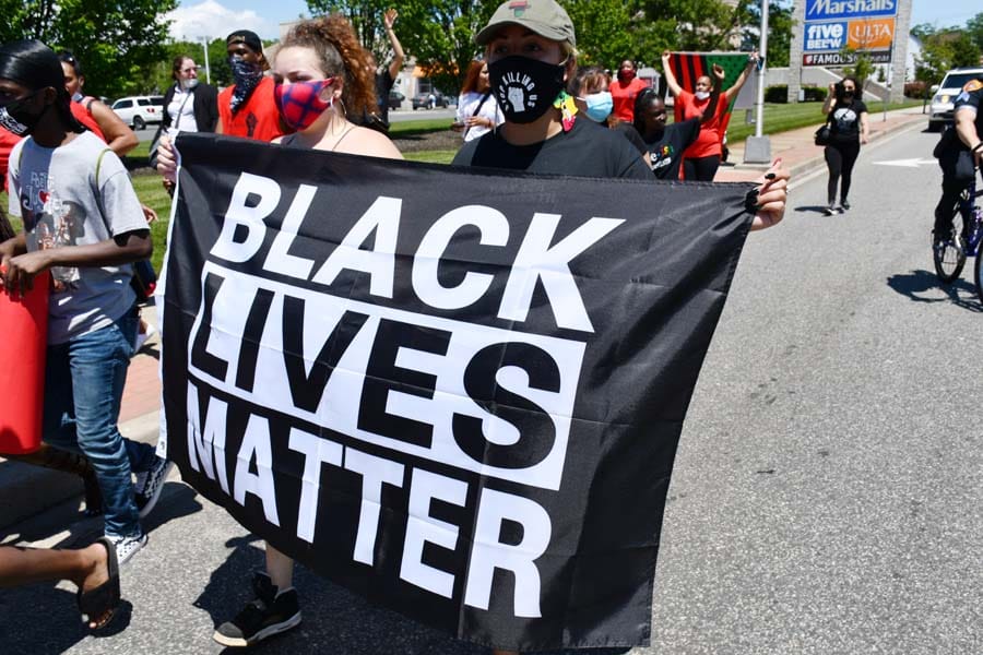 “Happy Juneteenth!” yelled a marcher, smiling, as vehicles honked to support the group of about 40, who started at Island Cinemas in Mastic and ended at the corner of William Floyd Parkway and Montauk Highway in the Applebee’s shopping center parking lot.