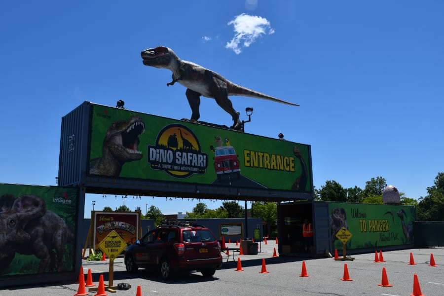 The Long Island Dino Safari opened June 11 at the Deer Park Tanger Outlets. The safari drive through “Pangea National Park,” where guests can feast their eyes on beasts like the mighty Tyrannosaurus Rex of North America and the amphibious Spinosaurus of Africa.